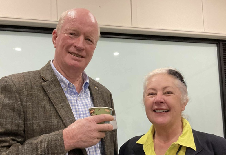 Photo 1: Dana Kelly (Australasian Chair of IYRP) with John Seccombe (western Queensland grazier & founder of the Great Artesian Basin Sustainability Initiative) at the IYRP Launch at Toowoomba.