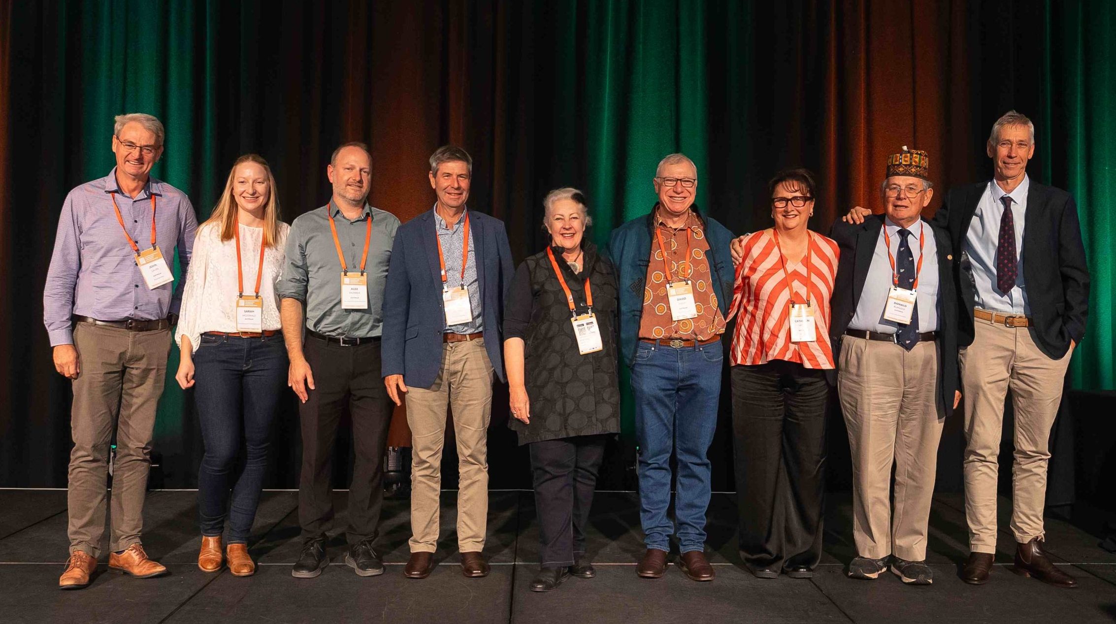 Photo 1: Members of the Organising Committee present at the Congress dinner. Left to right: John Gavin, Sarah Macdonald, Alex Baumber, Andrew Ash, Dana Kelly, David Phelps, Cath Waters, Don Burnside and Pieter Conradie. Absent: Nicole Spiegel, Saravan Peacock, Stephen van Leeuwen, Alison Nicolson and Cecile Godde.