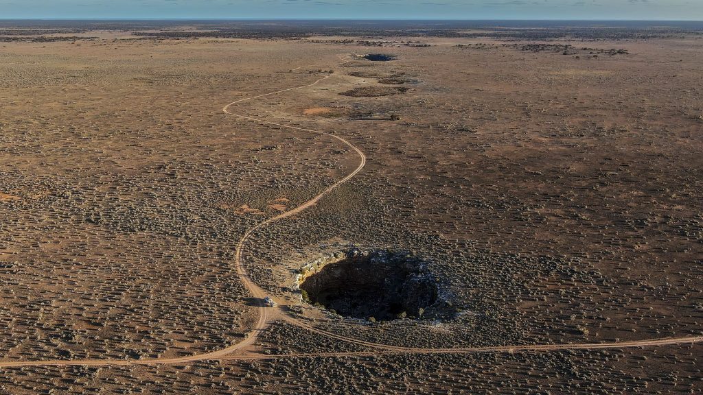 Figure 1. Surface expression of the caves on the Nullarbor provides only an indication of the complex network below the ground (Photo: Bronwen and Stefan Eberhard)